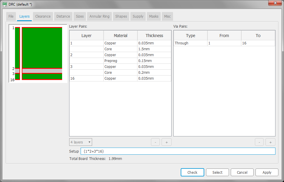 First, I’ve never seen a stackup that’s this asymmetrical. A clue that makes me think something is wrong is that the overall thickness adds up to 1.99mm, but my caliper measurement on a physical Mojo V3 board reports 1.56mm. Do you know what’s going on here and what is the correct stackup for this PCB?